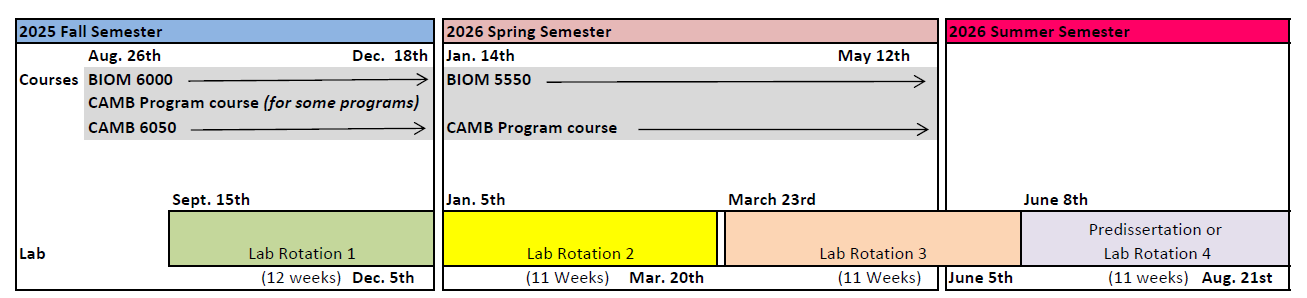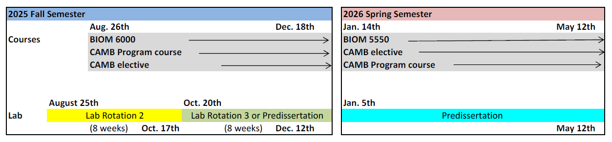 We are excited to welcome you to the CAMB community at Penn! Please note that Fall 2025 term begins with orientation on August 11th and classes on August 26th. Tentative schedules are provided below. Please check back closer to orientation for updates.