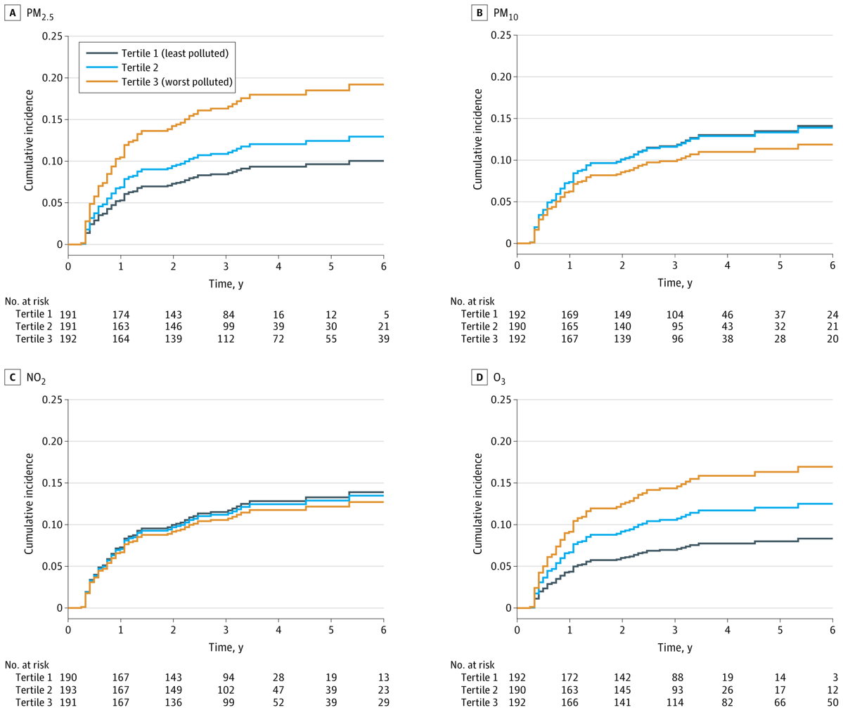 - Women in the highest pollution exposure groups had roughly double the risk of developing cancer therapy–related cardiac dysfunction.